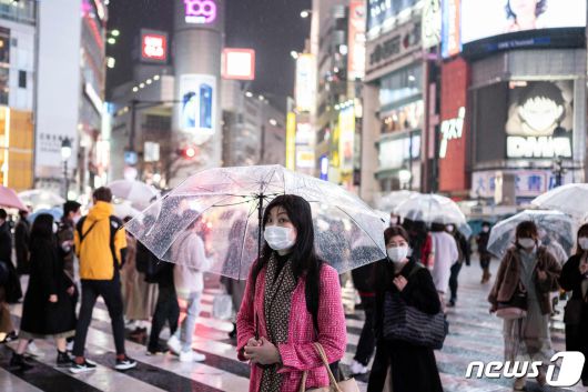 마스크를 쓴 행인들이 도쿄의 한 횡단보도를 건너고 있다. © AFP=뉴스1 |