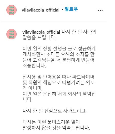 이어 “전시용 및 판매용을 떠나 파트타이머 및 직원의 책임으로 떠넘기려는 의도가 아니며, 이번 일을 온전히 저희 회사의 책임”이라며 “다시 한 번 진심으로 사과드리고, 다시는 이런 불미스러운 일이 발생하지 않을 것을 약속드린다”고 전했다.