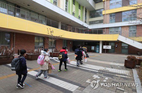 지난 2일 서울시 서초구 한 초등학교에서 학생들이 거리두기를 하며 등교하고 있다. [연합뉴스 자료사진] |