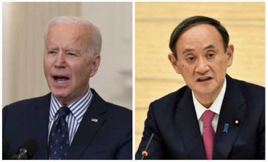 조 바이든(왼쪽) 미국 대통령과 스가 요시히데(菅義偉) 일본 총리의 모습. [AP, 로이터] |