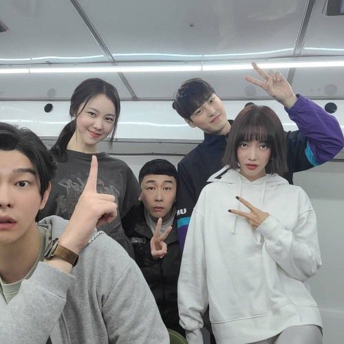 이번에 공개된 사진 속 윤균상은 영화 '치악산'에 같이 출연하는 김예원, 이태환, 연제욱, 배그린과 옹기종기 모여 셀카를 찍고 있다.