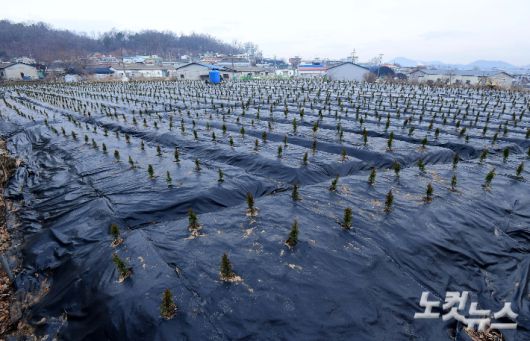 광명·시흥 신도시가 들어설 부지를 LH 직원들이 조직적으로 사들였다는 의혹이 제기된 가운데 4일 LH 직원 매수 의심 토지인 시흥시 과림동 현장에 묘목이 식재돼 있다. 국회사진취재단 |