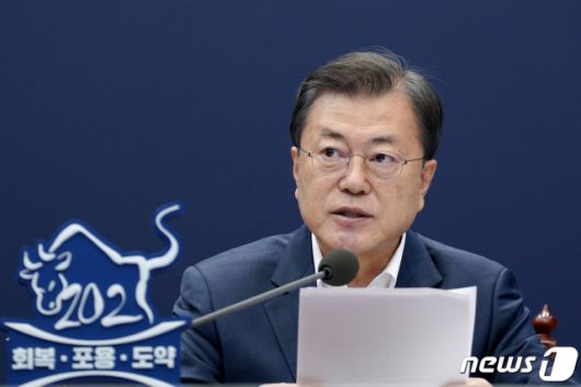 (서울=뉴스1) 이광호 기자 = 문재인 대통령이 8일 오후 청와대 여민관에서 열린 법무부ㆍ행정안전부 업무보고에 참석해 발언하고 있다. 2021.3.8/뉴스1 |