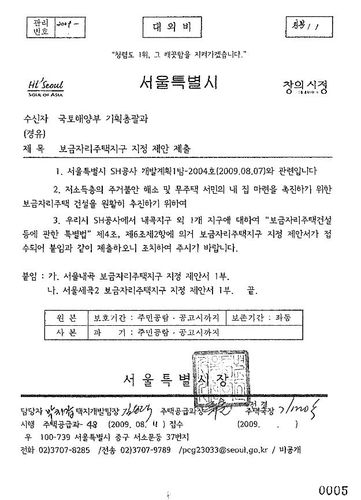 천 의원은 "당시에는 서울시 공문이 나오지 않았었다. 이번 자료로 서울시가 보금자리주택사업과 관련해 국토부에 먼저 제안한 것으로 확인된 것"이라며 "당시에도 의혹 제기 이후에라도 시정 최고책임자로서 책임있는 조치를 취했어야 하는데 후속 조치도 확인되지 않는다"고 지적했다.
