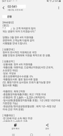 사기범들은 은행 등 제도권 금융회사를 사칭하며 정부의 긴급 지원자금 대출 신청이 가능하다는 문자메시지를 발송해 선별지급 대상 여부 확인, 비대면 대출신청 등을 핑계로 악성 URL주소를 클릭하게 하거나 회신 전화를 걸도록 유도하고 있다. 또 코로나 백신 관련 허위 투자정보로 악성 URL주소 클릭을 유도하는 사례도 발생하고 있다.
