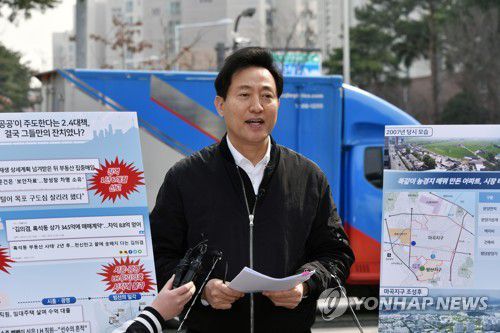 오 후보는 SNS에서도 "이 모든 사태의 궤적을 추적해보면 SH 사장에서 LH 사장으로, 국토부 장관으로 승승장구한 정치교수 출신 변창흠이 중심에 있다"며 변 장관 책임론을 부각했다.