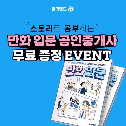 한편, 메가랜드의 ‘스토리로 공부하는 만화 입문 공인중개사 무료 증정 이벤트’와 ‘전과목 0원땅’ 에 대한 더욱 자세한 내용은 메가랜드 홈페이지에서 확인 가능하다.