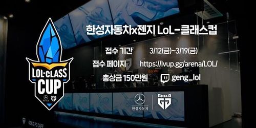 한성자동차×젠지 LoL-클래스컵은 3월 27일∼4월 17일 열린다.