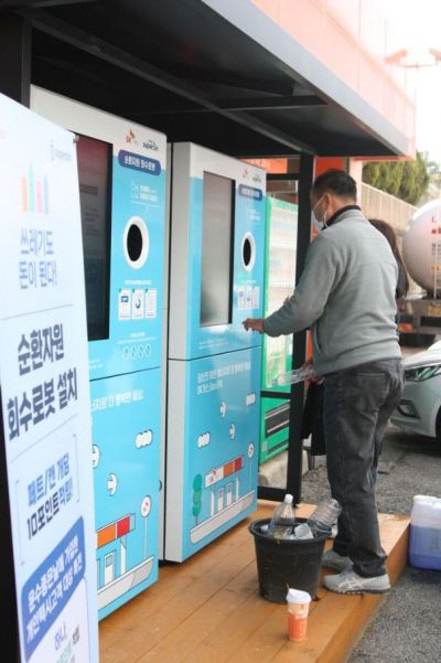 충전소에 설치된 ‘네프론’ 로봇은 소셜벤처기업 ‘수퍼빈’이 개발한 재활용품 회수 자판기다. 페트병이나 캔을 이 로봇에 넣으면 인공지능(AI)이 선별해 재활용 가능한 제품일 경우 포인트를 적립해주는 형태로 운영된다. 적립된 포인트는 2000점 이상이 되면 ‘수퍼빈’ 홈페이지(http://superbin.co.kr)를 통해 현금으로 바꿀 수 있다. 다만 재활용이 불가능한 상태의 제품을 투입할 경우에는 되돌려 보내주는 방식이다.