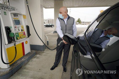 미국 보스턴에서 자가용에 주유 중인 한 운전자 |