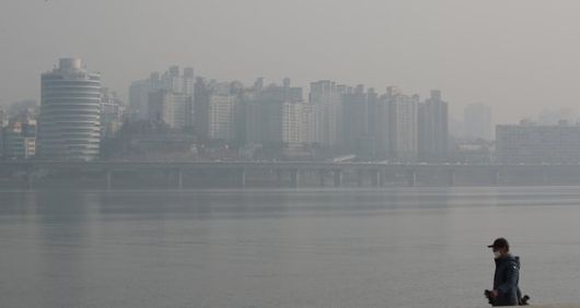서울 마포대교 인근에서 바라본 한강과 용산 일대가 안개와 미세먼지 등으로 뿌옇게 보인다. 연합뉴스 |