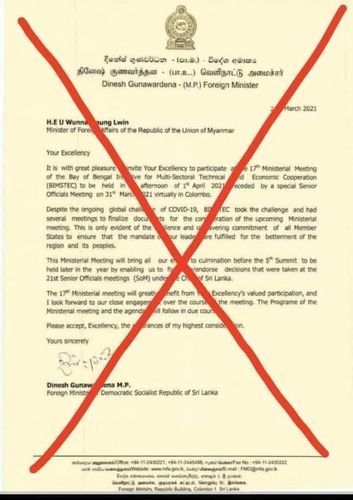 스리랑카 외교부 관계자는 통신에 "미얀마가 BIMSTEC 회원국이고 그 자격이 박탈되거나 중지되지도 않았기 때문에 현재 재임 중인 외교장관이 초대된 것"이라고 해명했다.
