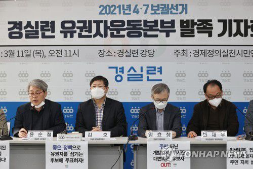 (서울=연합뉴스) 문다영 기자 = 경제정의실천시민연합(경실련)은 11일 서울 종로구 경실련 강당에서 기자회견을 열고 '4·7 보궐선거 경실련 유권자운동본부'(운동본부) 발족을 선언했다.