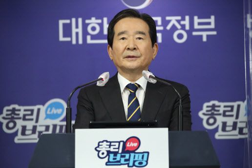 정세균 국무총리가 11일 오후 정부서울청사 브리핑실에서 열린 3차 정례 브리핑에서 국토교통부와 한국토지주택공사(LH) 임직원을 대상으로 진행한 ‘1차 전수조사’ 결과를 직접 발표하고 있다.(사진=연합뉴스) |