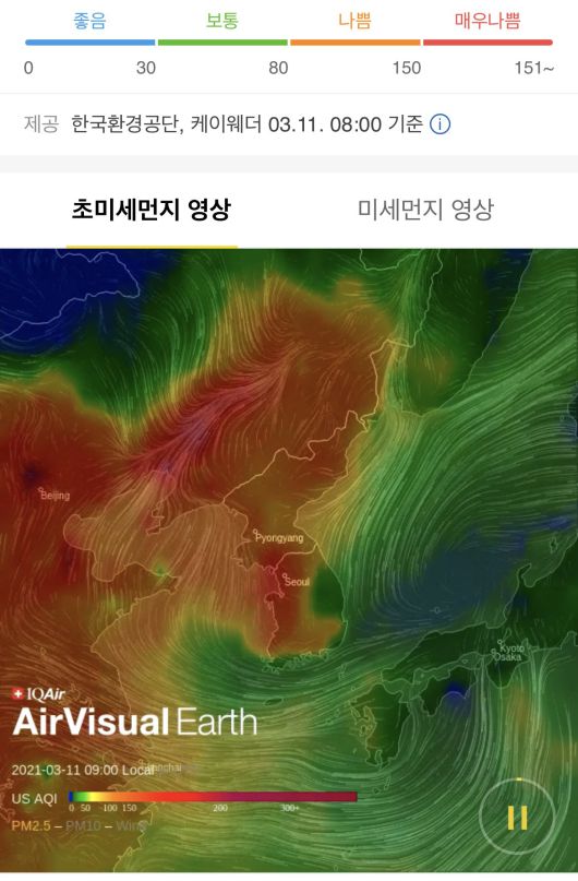 전국 대부분 지역에서 11일 미세먼지 혹은 초미세먼지 농도가 '나쁨' 이상 상태를 보이고 있다. 특히 서울은 밤새 미세먼지 농도가 100㎍을 넘어서면서 수도권엔 올봄 들어 처음으로 미세먼지 비상저감조치가 시행됐다. 국립환경과학원은 "초미세먼지 농도는 13일 지속된 대기 정체와 국외 유입으로 수도권·강원 영서·충청권에서 '높음'(36㎍/㎥ 이상), 14일 대기 정체에 의해 잔류한 미세먼지로 수도권·강원 영서·충청권·광주·전북·대구에서 '높음' 상태를 보일 것"이라고 예상했다. 아울러 "15일도 서울·경기 북부·경기 남부·강원 영서·세종·충북에서 '높음'일 것"이라며 "16일에야 강한 바람으로 국내 축적된 미세먼지가 해소되겠다"고 전망했다. 김성룡 기자, 사진 연합뉴스, 뉴스1