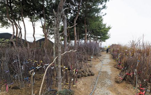 문재인 대통령 처남 김모씨가 소유한 경기 성남시 수정구 시흥동의 그린벨트 농지. 11일 오후 찾은 이 땅에는 각종 묘목이 심어져 있었다. /김지호 기자 |