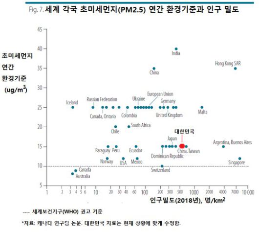 연구팀은 일본·대만 등은 인구밀도가 높은데도 상대적으로 엄격한 환경기준을 도입했고, 이를 달성하는 데 성공했다고 긍정적으로 평가했다.