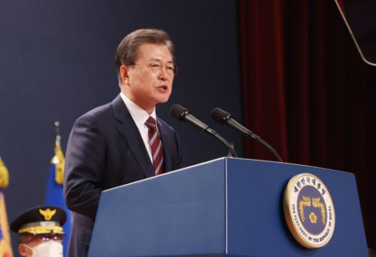 [아산=뉴시스]추상철 기자 = 문재인 대통령이 12일 오후 충남 아산시 경찰대학에서 열린 신임 경찰 경위·경감 임용식에 참석해 축사를 하고 있다. 2021.03.12. scchoo@newsis.com <저작권자ⓒ 공감언론 뉴시스통신사. 무단전재-재배포 금지.> /사진=뉴시스화상 |