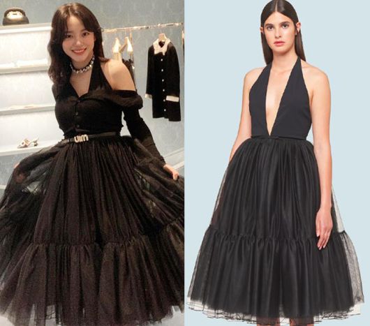 가수 겸 배우 김세정이 입은 '미우미우'의 튤 드레스와 뒤태가 드러나는 파격적인 울 카디건의 모습./사진=미우미우(Miu Miu)