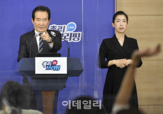 정세균 국무총리가 지난 11일 오후 서울 종로구 정부서울청사 합동브리핑실에서 열린 정례브리핑에서 ‘3기 신도시 땅 투기 의혹 1차 조사 결과’ 발표를 하고 기자들의 질문을 받고 있다. (사진=김태형 기자) |