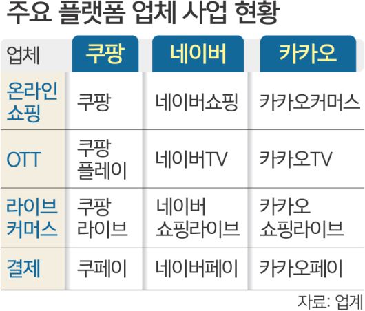 쿠팡은 이커머스에 진출해 이미 업종 간 경계를 허물고 있는 네이버, 카카오 양대 플랫폼과도 경쟁하게 될 것으로 보인다.