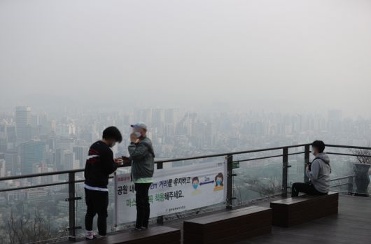 미세먼지 농도가 '나쁨' 수준이었던 지난 13일 오전 서울 남산에서 바라본 도심 모습. [연합] |