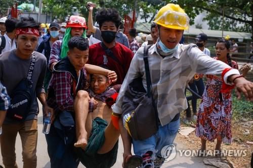 쿠데타 규탄 시위 도중 총격당한 미얀마 시민 |