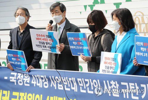 (서울=연합뉴스) 정성조 기자 = 이명박 정부 당시 국가정보원이 4대강 사업에 반대한 시민사회계·종교계·학계·언론계 등 민간인을 불법 사찰한 정황이 담긴 문건 8종이 15일 공개됐다.