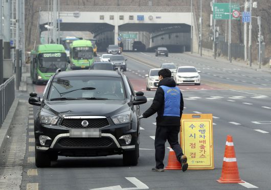서울, 인천, 경기, 충남 지역에 미세먼지 비상저감조치가 시행 중인 15일 서울시청 차량공해저감과 직원들이 서울 양천구 일대에서 화물 차량의 매연저감장치 점검과 노후 경유 차량에 대한 배출가스 단속에 나섰다. 이날 서부트럭터미널에서는 고의로 매연저감장치를 훼손한 차량이 적발돼 고발조치 되기도 했다. 매연저감장치를 임의로 떼거나 무단으로 훼손한 차량은 1년 이하의 징역 또는 1000만 원 이하의 벌금에 처한다. 한편 노후 경유 차량의 경우 배출 허용기준을 초과한 차량의 소유자에게는 15일 이내 차량을 정비·점검하도록 개선명령이 내려진다. 이를 어기면 최대 10일간의 운행정지 처분을 받고, 운행정지 명령에 불응하면 300만 원 이하의 벌금형을 받을 수 있다.