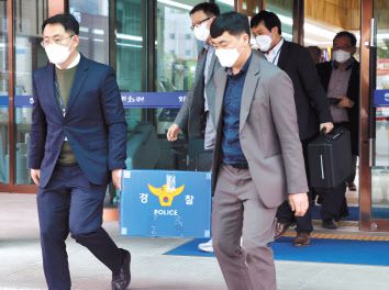 경기남부경찰청 부동산 투기사범 특별수사대 관계자들이 광명시 6급 공무원 B씨의 부동산 투기 의혹과 관련 지난 15일 광명시청을 압수수색하고 압수물을 옮기고 있다. [연합] |