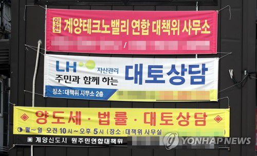 인천 3기 신도시 예정지에 내걸린 대토상담 현수막 |
