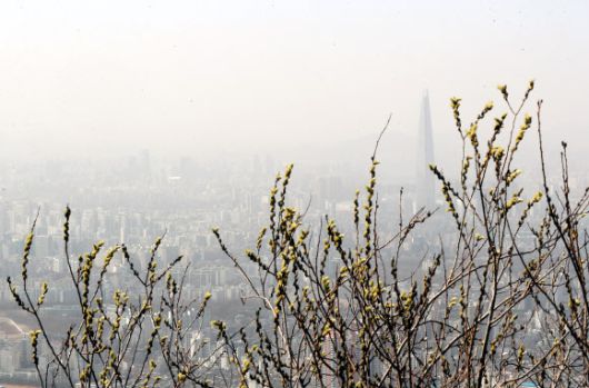 전날인 16일 오후 경기 광주 남한산성에서 바라본 서울 도심 대기가 뿌옇다. 뉴시스 |