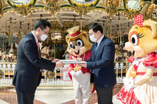 6년 연속으로 받은 ‘숨쉬기 좋은 공간’ 인증서를 롯데월드 캐릭터들이 맞잡고 있다. |