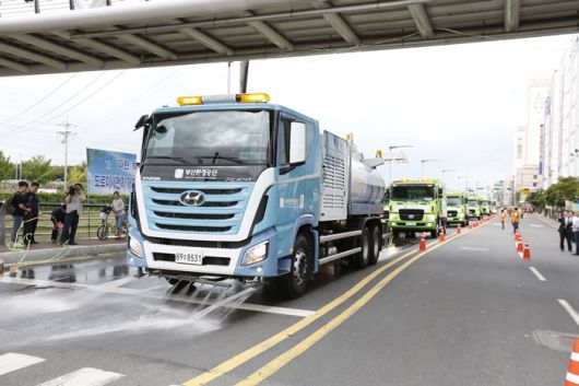 부산환경공단에서 도로 미세먼지를 제거하고 있다. [부산환경공단 제공] |