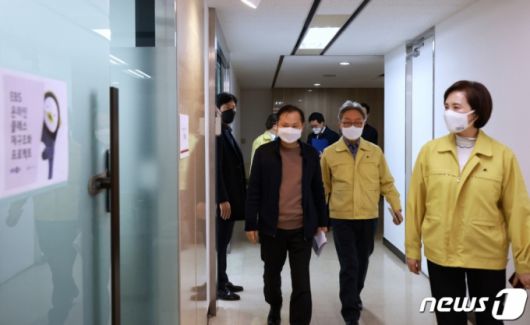 유은혜 사회부총리 겸 교육부 장관이 지난 5일 서울 종로구 한국교육방송공사(EBS) 공공학습관리시스템(LMS) 비상상황실을 방문, 운영상황을 점검하고 있다. /사진제공=교육부 |