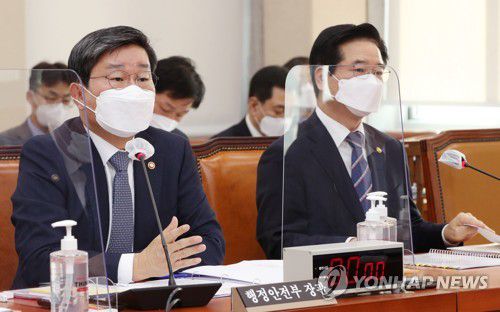 (서울=연합뉴스) 이동환 기자 = 여야는 17일 국회 행정안전위 전체회의에서 문재인 대통령의 지난달 25일 부산 가덕도 방문이 공직선거법 위반인지 여부를 두고 공방을 벌였다.