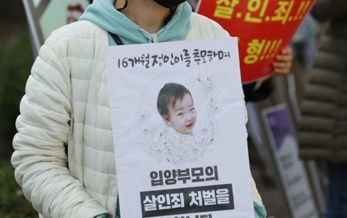 정인 양 양부모의 공판이 열린 17일 오후 서울 양천구 남부지방법원 앞에서 시민들이 강력한 처벌을 요구하며 팻말 시위를 벌이고 있다. 연합뉴스 |