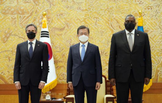 문 대통령은 이날 오후 3시부터 50분간 청와대 본관 2층 접견실에서 미국의 토니 블링컨 국무장관과 로이드 오스틴 국방장관을 접견하고 “한미가 함께 공동의 포괄적 대북전략 마련 필요 있다”면서 이같이 말했다고 강민석 청와대 대변인이 브리핑을 통해 전했다.