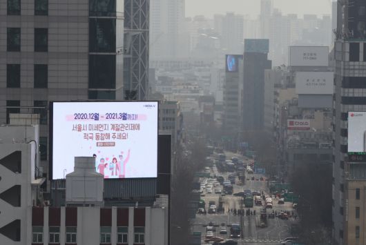 19일 오전 서울 시내가 뿌옇게 보이고 있다. 이날 서울은 오전 중 미세먼지 농도가 '나쁨' 수준을 기록하겠다. [연합] |