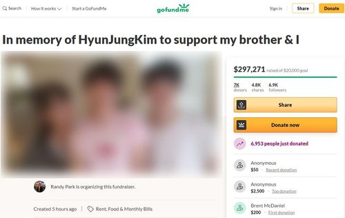 온라인 모금사이트 '고펀드미'에 애틀랜타 총격사건 피해자 아들이 올린 지원요청 게시글. [고펀드미 갈무리=연합뉴스] |