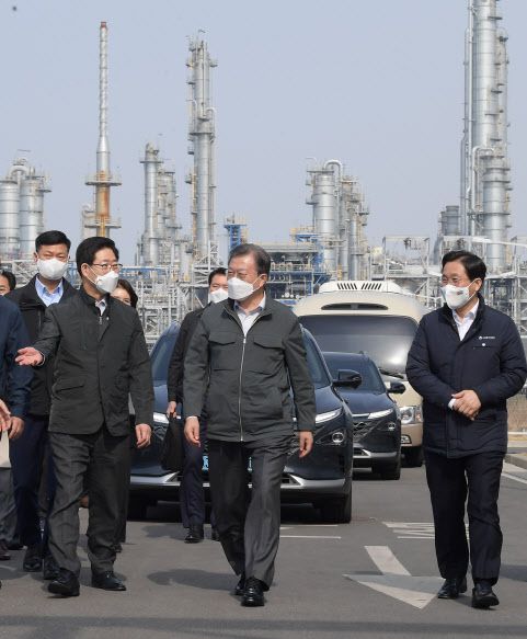 문 대통령은 “대산그린에너지도 대한민국의 탄소중립을 가장 중심에 서서 이끌어갈 수 있게 되지 않을까”며 “정부에서도 감사하다는 말씀과 함께 격려의 말씀을 드린다”고 했다.