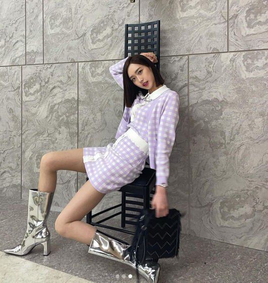 공개된 사진에는 단발머리에 보라색 체크무늬 카디건 차림의 한지현이 연보라색 꽃을 들고 카메라를 바라보고 있다. 또 다른 사진에서는 은색 부츠를 신고 긴 다리를 드러내 전문 모델을 방불케한다.