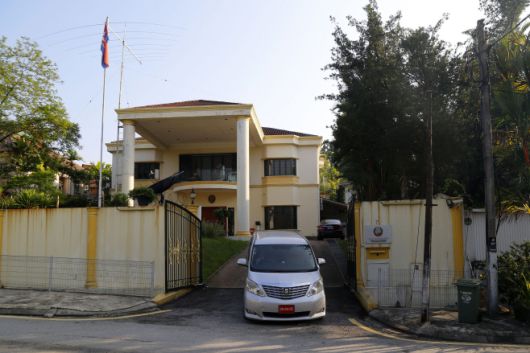 20일(현지시간) 말레이시아 수도 쿠알라룸푸르에 있는 북한 대사관에서 승용차 한 대가 빠져나오고 있다. 말레이시아 정부는 전날 북한의 단교(斷交) 선언과 관련해 깊은 유감을 표명하며 쿠알라룸푸르 주재 북한 대사관 직원들에게 48시간 이내 떠날 것을 명령했다. 앞서 북한은 말레이시아 당국이 북한 주민을 ‘불법 자금세탁’ 관여 혐의로 미국에 넘겼다며 외교관계 단절을 선언했다./사진=쿠알라룸푸르 AP=연합뉴스 |