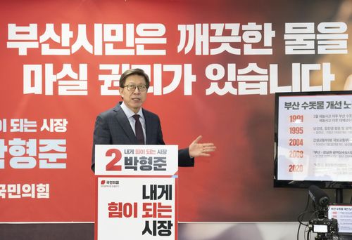 수돗물 관련 정책 발표하는 박형준 국민의힘 부산시장 후보 |