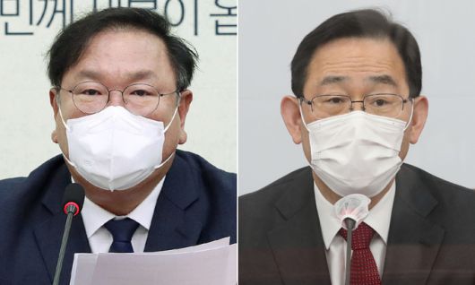 더불어민주당 김태년 당대표 직무대행과 국민의힘 주호영 원내대표. |