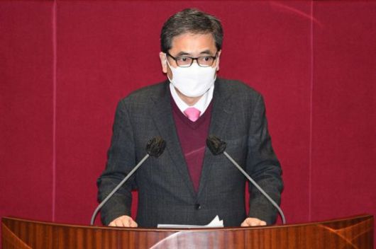 곽상도 국민의힘 의원이 지난달 26일 국회 본회의에서가덕도 신공항 건설을 위한 특별법안에 대한 토론을 하며 반대 입장을 표명하고 있다 [이미지출처=연합뉴스] |