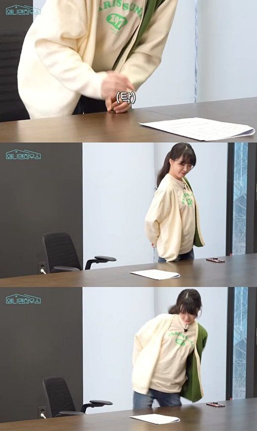 김민아는 "이건 말 안해도 돼요. 말을 못하니까"라며 테이블 위에 무언가를 여러 개 올려놓는 시늉을 했다. 이어 테이블 앞에 일어선 채 허리를 옆으로 흔드는 동작을 했다. 이후 영상에 '세상에'란 자막이 나오고 다른 내용으로 전환됐다.