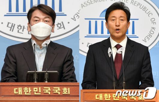 안철수 국민의당 서울시장 후보(왼쪽)와 오세훈 국민의힘 서울시장 후보/사진=뉴스1 |