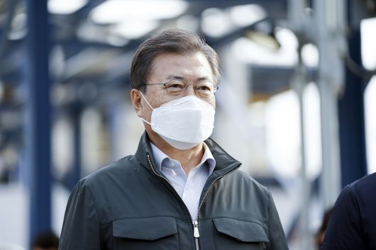 문재인 대통령이 19일 오후 충남 서산시 대산그린에너지 수소연료전지발전소를 방문, 시설을 시찰하고 있다. /연합뉴스 |