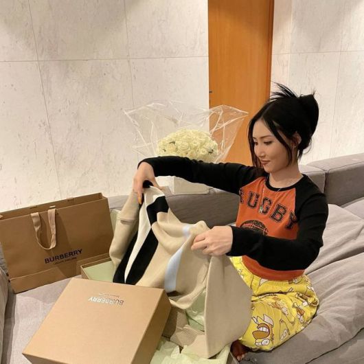 [OSEN=장우영 기자] 걸그룹 마마무 화사가 잠옷 차림으로 명품을 언박싱하는 모습을 공개했다.
